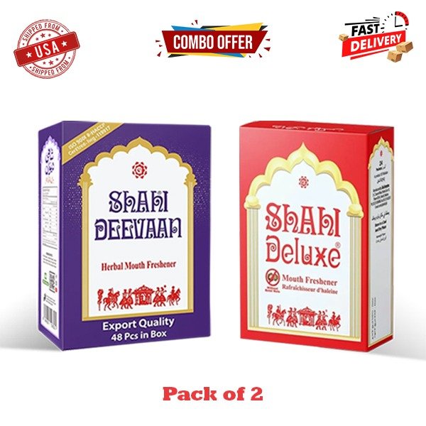 Enjoy a premium fusion of flavor, aroma, and freshness with the 2 Boxes Value Pack featuring Shahi Deevaan and Shahi Deluxe Mouth Freshener. Crafted with high-quality supari, natural herbs, meva blends, and aromatic ingredients, this combo delivers a rich and refreshing taste after every meal.